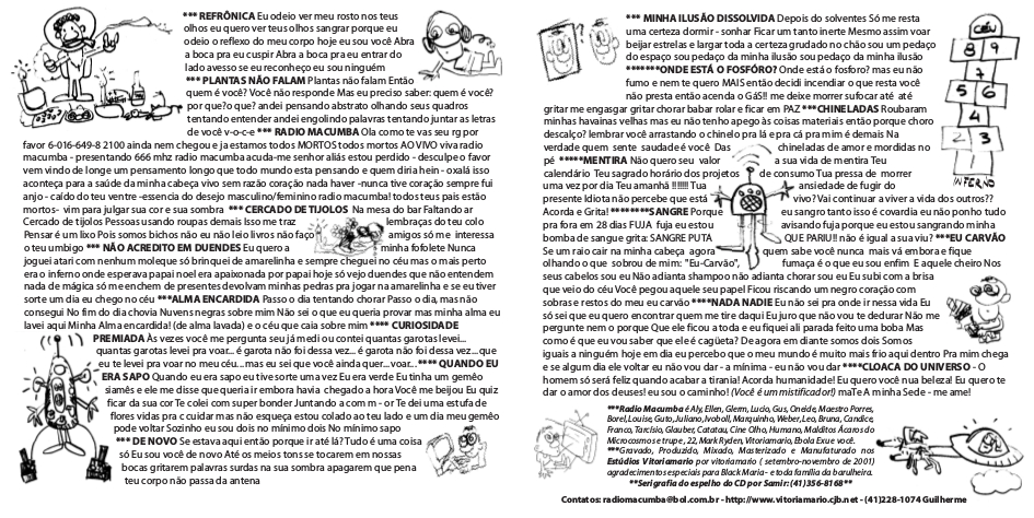***Gravado, Produzido, Mixado, Masterizado e Manufaturado nos Estúdios Vitoriamario por vitoriamario (setembro-novembro de 2001)